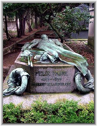 Große Aufregung gab es in den Massenblättern Frankreichs, als die Umstände des plötzlichen Todes Félix Faures bekannt wurden: Er erlitt, nachdem er sich zwischen zwei Sitzungen anläßlich der Dreyfusaffaire mit seiner Mätresse Marguerite Steinheil, die er Im Jahr 1897 in Chamonix kennengelernt hatte, im Blauen Salon des Élysée-Palasts getroffen hatte, beim Oralverkehr einen Hirnschlag (vermutlich infolge einer Überdosis eines Aphrodisiakum), an dessen Folgen er noch am selben Abend verstarb. Madame Steinheil wurde daraufhin mit dem Beinamen “la Pompe Funèbre“ [franz. “die Trauerpumpe“, in Anspielung auf ”les Pompes funèbres“, Begriff für Beerdigungsinstitut], bedacht.