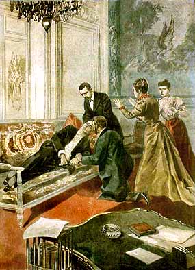 Zeitgenössische Darstellung im Petit Journal des plötzlichen Todes Félix Faures im Élysée-Palast