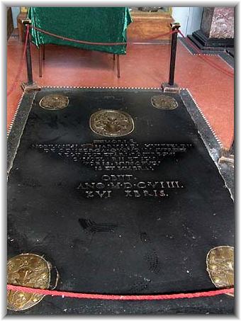 Hinweis: Die liegende Kalksteinfigur auf dem Hochgrab Rainald von Dassels stammt von Alexander Iven (1854–1934), der 1905 damit die Ende des 18. Jahrhunderts zerstörte mittelalterliche Bronzefigur ersetzte.