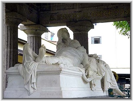 Mexikanischer Staatsmann und Staatspräsident; der Sohn zapotekischer (indianischer) Eltern, der bis zu seinem 15. Lebensjahr kein Spanisch sprach, wurde im Alter von drei Jahren Waise und von Priestern erzogen. Nach seinem Studium und einer kurzen Tätigkeit als Anwalt wandte er sich der Politik zu und wurde Parteigänger der Liberalen, deren Führer er später wurde. 1854 setzte er den im Krieg unterlegenen General Antonio López de Santa Anna ab. Seit 1858 war Juárez Vizepräsident und von 1861 bis 1872 Staatspräsident. 1859 erließ er Reformgesetze (“La Reforma”) u.a. über die Trennung von Kirche und Staat, die Zivilehe, Religionsfreiheit und Aufhebung der Klöster. Um die finanzielle Ausblutung des Landes zu verhindern, stellte er die Zinszahlungen ein, was den Anlaß zu einer französisch-englisch-spanischen Intervention gab, in deren Folge der österreichische Erzherzog Maximilian, Bruder des österreichischen Kaisers Franz Joseph I., 1864 als Kaiser vom Mexiko eingesetzt wurde. Juárez García gewann jedoch die Oberhand und ließ Maximilian 1867 erschießen.